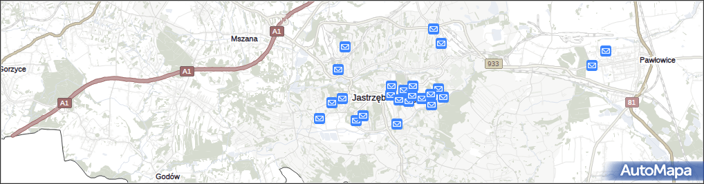 mapa Jastrzębie-Zdrój, Jastrzębie-Zdrój na mapie Targeo