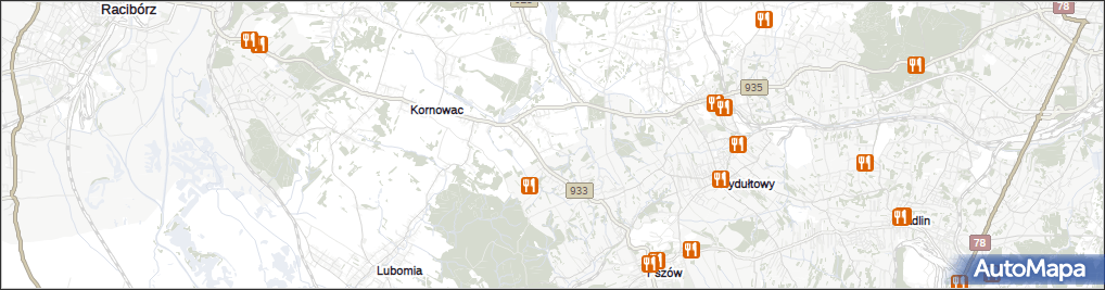 mapa Rzuchów gmina Kornowac, Rzuchów gmina Kornowac na mapie Targeo