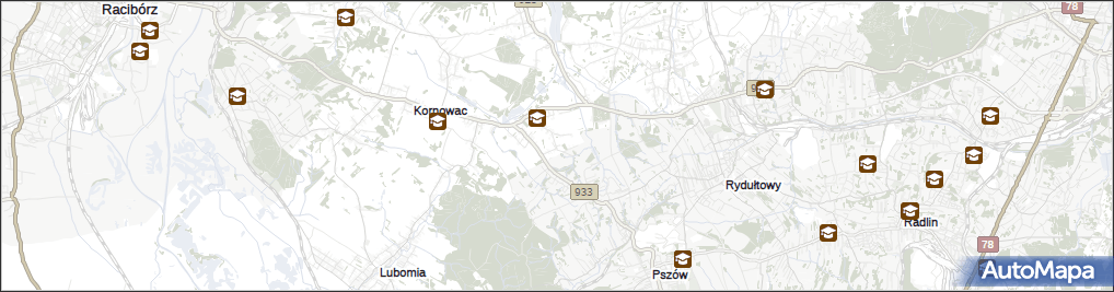 mapa Rzuchów gmina Kornowac, Rzuchów gmina Kornowac na mapie Targeo