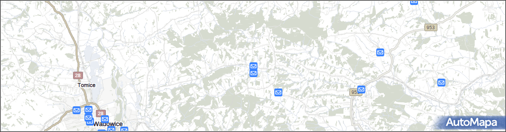 mapa Wysoka gmina Wadowice, Wysoka gmina Wadowice na mapie Targeo