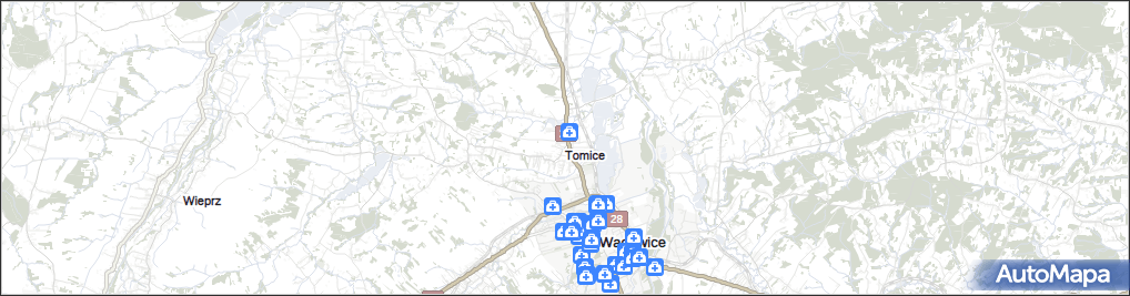 mapa Tomice powiat wadowicki, Tomice powiat wadowicki na mapie Targeo
