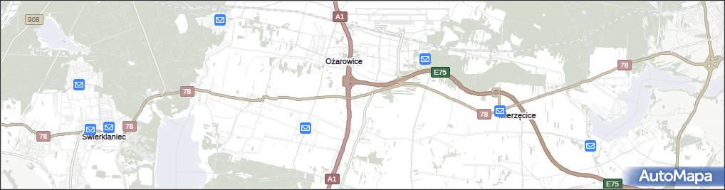 Punkty z kategorii Automatyczna skrytka pocztowa w miejscowości Celiny gmina Ożarowice i okolicach