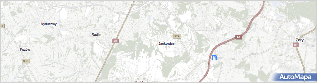 mapa Jankowice gmina Świerklany, Jankowice gmina Świerklany na mapie Targeo