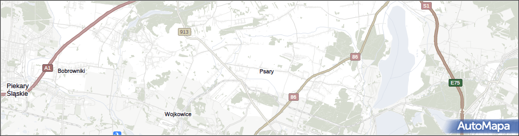 mapa Psary powiat będziński, Psary powiat będziński na mapie Targeo