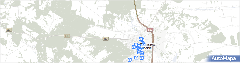 mapa Rogóźno gmina Tomaszów Lubelski, Rogóźno gmina Tomaszów Lubelski na mapie Targeo