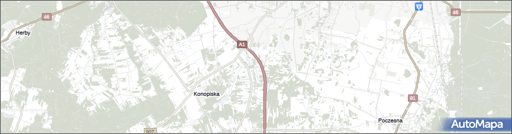 mapa Wąsosz gmina Konopiska, Wąsosz gmina Konopiska na mapie Targeo