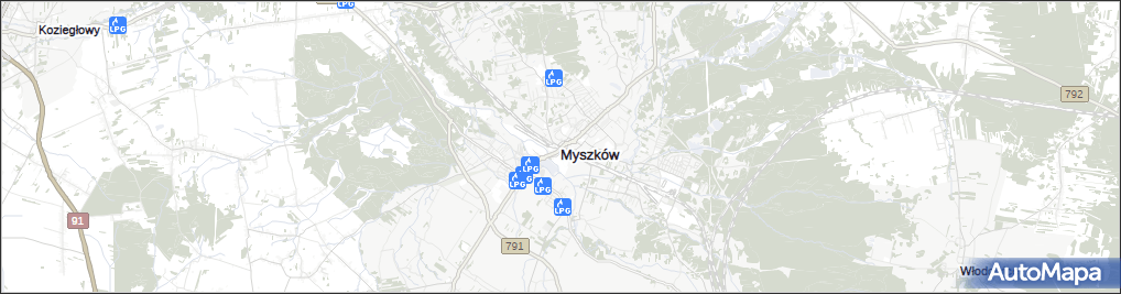 Punkty z kategorii LPG - Stacja w miejscowości Myszków i okolicach