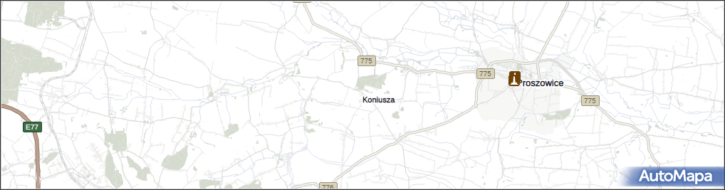 mapa Koniusza powiat proszowicki, Koniusza powiat proszowicki na mapie Targeo