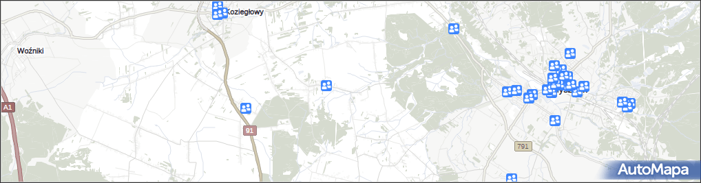 mapa Osiek gmina Koziegłowy, Osiek gmina Koziegłowy na mapie Targeo