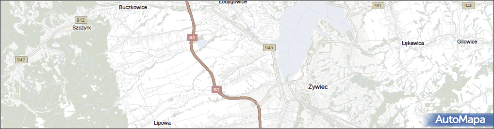 mapa Pietrzykowice gmina Łodygowice, Pietrzykowice gmina Łodygowice na mapie Targeo