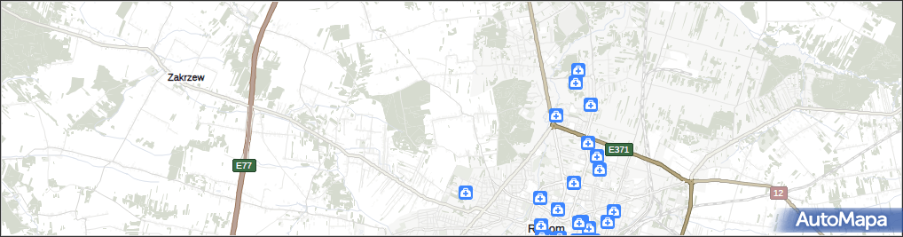 Punkty z kategorii Stacja krwiodawstwa w miejscowości Janiszew gmina Zakrzew i okolicach