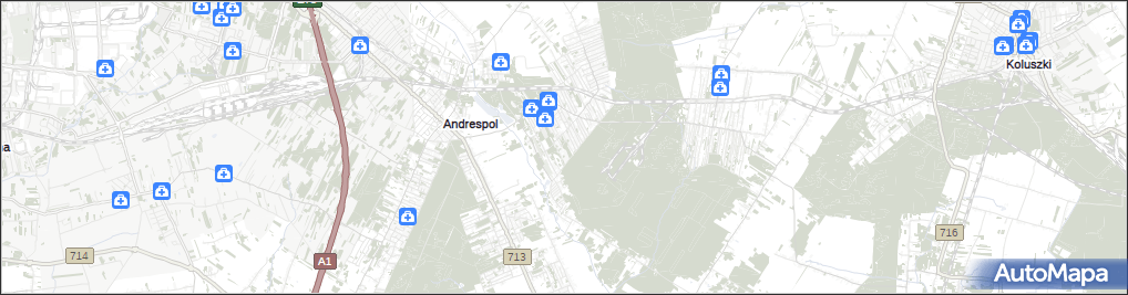 mapa Justynów gmina Andrespol, Justynów gmina Andrespol na mapie Targeo